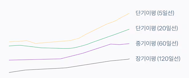 - 일정 기간 가격의 평균치를 나타내는 선으로 추세를 파악합니다.